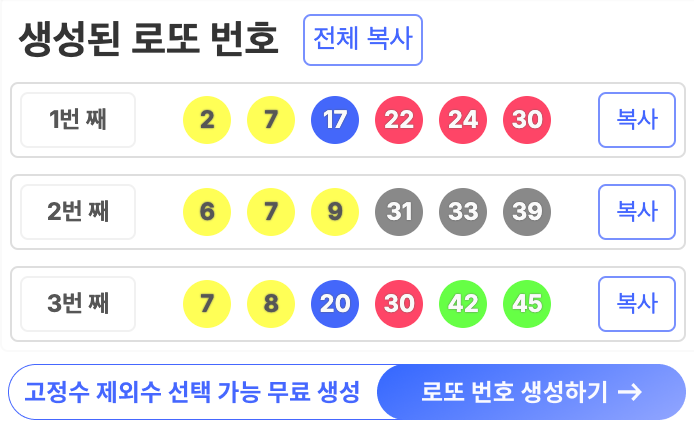 복권나라에서는 지금까지 총 4번의 1등 당첨이 나왔습니다. 복권나라의 1등 당첨 회차는 327회, 665회, 921회, 1152회입니다. 복권나라에서 가장 최근 1등이 당첨된 회차는 1152회로 20주 전입니다. 주소는 전남 목포시 당가두로14번길 47-1 103호 복권나라입니다.